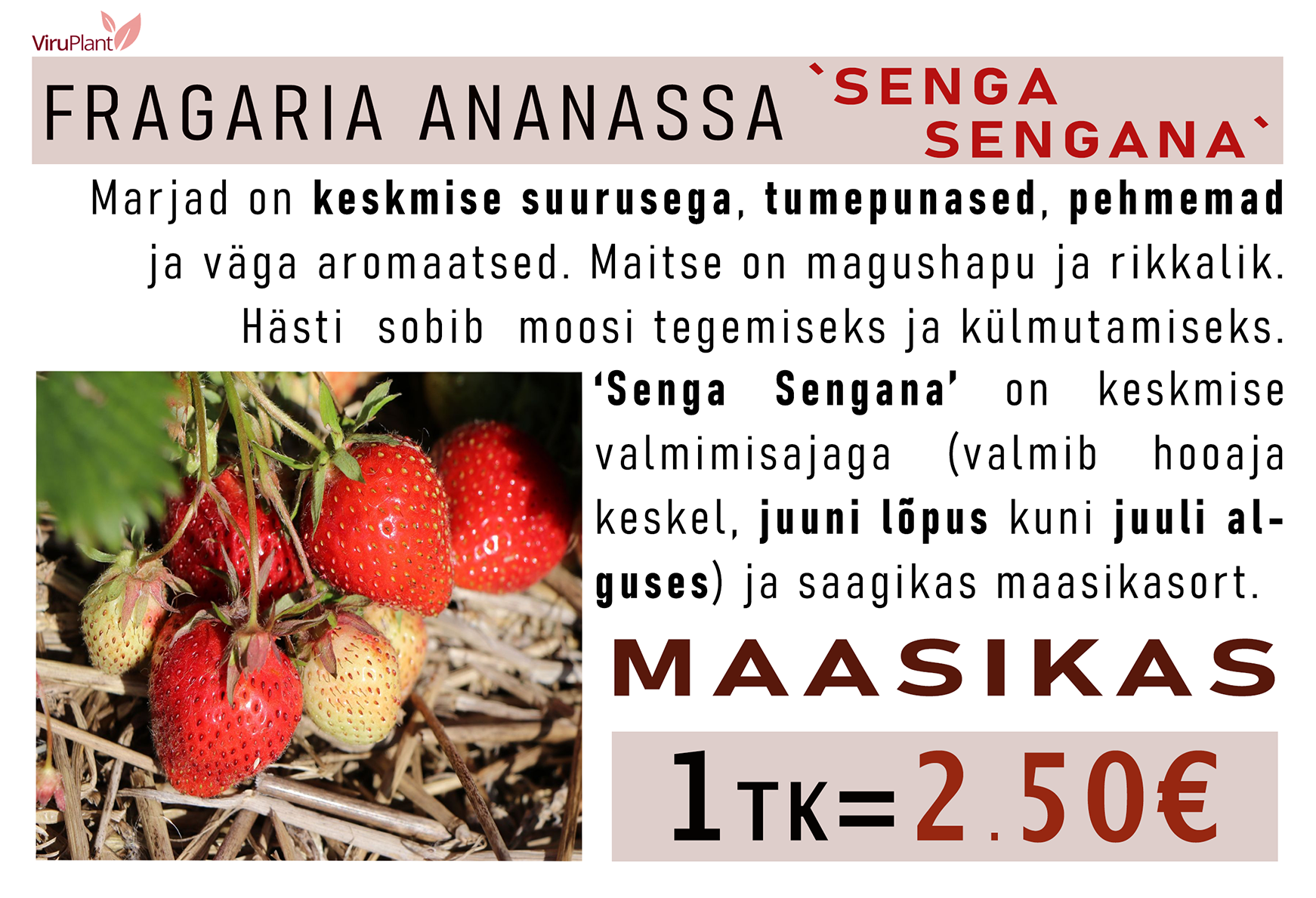 🍓 Hind: 2.50 €/tk